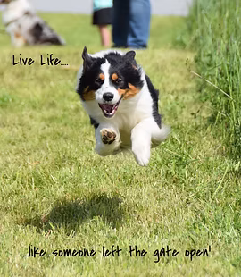 Toga can now be found residing and traveling with handlers Jillayne and Andy Parnell at Hightide Aussies. He adores these humans and the job he's doing with them.